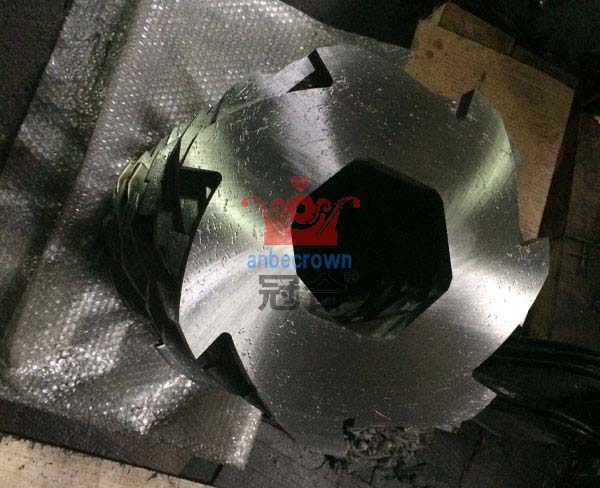 下面我們重點對單軸撕碎鋸刀片進行介紹。單軸撕碎機切削部分由刀輥、刀粒、定刀和篩網構成,單軸撕碎機的刀粒與定刀之間的小安裝間隙為0.1mm,通過刀輥進行高速旋轉,使得刀粒與定刀形成切削,然后通過一次切削,如果物料的尺寸小于篩網的孔徑,則會從網孔出料,否則物料將在刀箱內進行多次切削,一直到達到出料尺寸為止方能出料。
